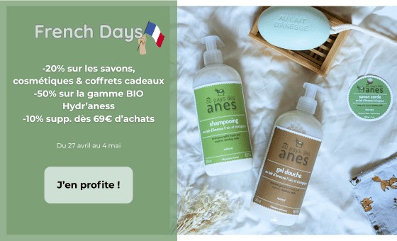 Cosmétiques naturels et savons au lait d’ânesse frais et biologique de fabrication française