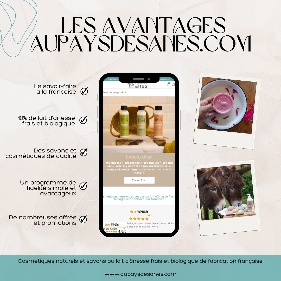 Avec l’engouement de l’univers de la beauté pour cet élixir beauté qu’est le lait d’ânesse, de plus en plus de fabricants ont souhaité exploiter cet ingrédient. Au Pays des Ânes a une expérience de plus de 15 ans dans le lait d’ânesse et est devenu la référence pour des savons et cosmétiques qualitatifs. Découvrez pourquoi acheter sur aupaysdesanes.com est un réflexe à avoir lorsque l’on recherche des savons et cosmétiques au lait d’ânesse.