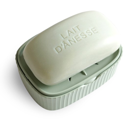 La boite à savon 2 en 1 Au Pays des Ânes est idéale pour transporter tout cosmétique solide en vacances, lors de vos déplacements professionnels, à la salle de sport, etc. En plus d'être pratique pour les déplacements, cette boite à savon sert de support lors de l'utilisation du cosmétique et facilite son séchage. D'une jolie couleur verte, cette boîte à savon de voyage s'inscrit également dans une démarche zéro déchet avec sa composition en bouchons recyclés.