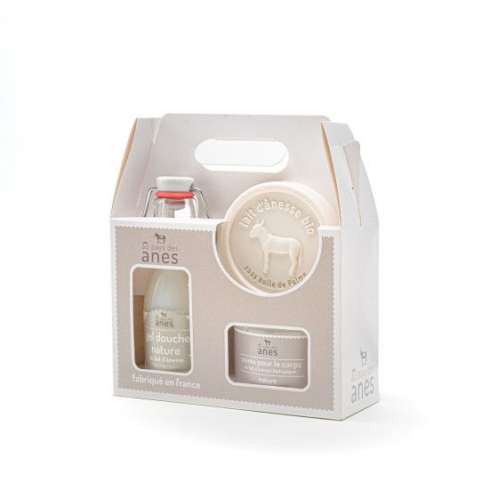 Coffret découverte savon et cosmétiques au lait d’ânesse nature