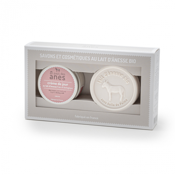 Il n'est pas toujours évident de trouver un petit cadeau qui fait plaisir à coup sûr ! Avec notre coffret douceur, vous offrez de véritables moments de bien-être avec notre savon rond sans huile de palme qui nettoie la peau en profondeur et en douceur pour lui apporter toute l'hydratation dont elle a besoin. La crème de jour prend soin de votre visage grâce à la richesse de sa composition : lait d'ânesse frais et biologique, beurre de karité, huile de pépin de raisin, vigne rouge, romarin, vitamine E, huile d'argan.