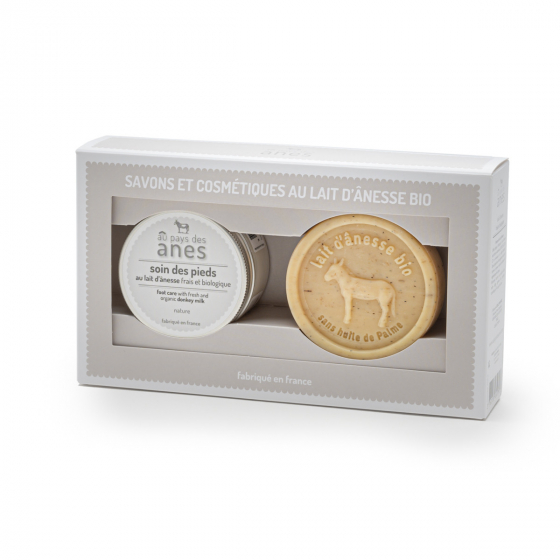 Coffret cadeau douceur savon et cosmétique au lait d’ânesse pour le soin des pieds