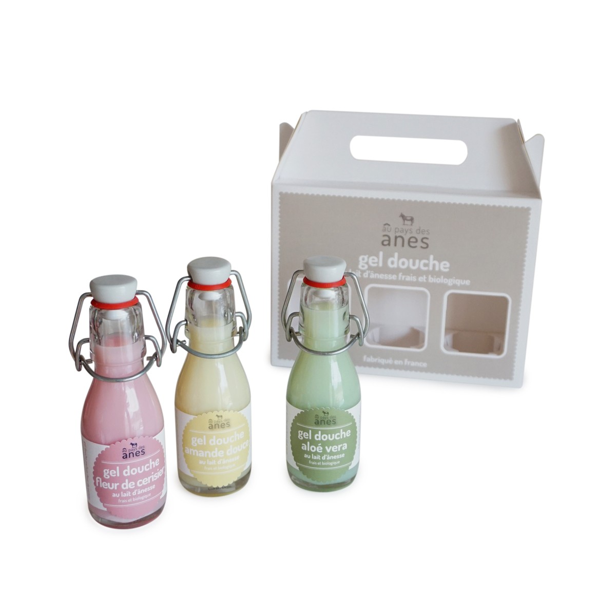 Découvrez le plaisir d’utiliser nos gels douche limonade dans un coffret cadeau, réunissant trois fragrances raffinées qui éveilleront vos sens et prendront soin de votre peau. Ce coffret limonade contient trois gels douche de 100 ml au lait d’ânesse frais et biologique, connus pour leurs vertus nourrissantes et adoucissantes. Ils laissent ainsi la peau souple, hydratée et délicatement parfumée. Le packaging ludique et réutilisable de nos gels douche limonade en fait un cadeau original et pratique, parfait pour les amoureux de soins naturels et gourmands.