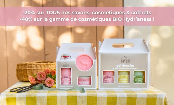 Cosmétiques naturels et savons au lait d’ânesse frais et biologique de fabrication française