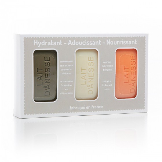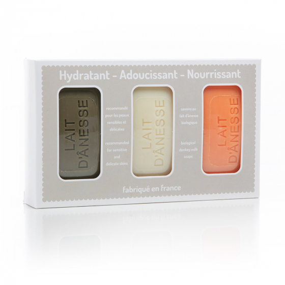 Enrichis au lait d’ânesse frais et biologique, et au beurre de karité, ces savons (3x125g) vous font bénéficier de vertus ancestrales pour un soin hydratant remarquable. Plus qu’un soin douche, votre peau est nettoyée en douceur et retrouve toute sa souplesse pour votre plus grand plaisir ! Un moment de bien-être incontestable que vous modulez suivant votre humeur, au gré de vos différents parfums, pour une toilette qui se renouvelle tous les jours. Quels que soient les savons que vous sélectionnerez, le coffret Concaves vous comblera avec ses odeurs délicates et ses produits naturels à l’efficacité remarquable !