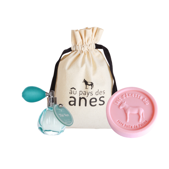 Quelle que soit l'occasion pour laquelle vous recherchez un cadeau, osez l'originalité avec ce pochon cadeau senteur / douceur ! Son petit pochon 100% coton peut être réutilisé pour transporter vos cosmétiques préférés lors de vos déplacements, l'eau de toilette vous fait profiter d'une agréable senteur provenant de Grasse et le savon rond sans huile de palme vous assure une peau douce et hydratée. Avec ce pochon cadeau, offrez des moments de douceur parfumée.
