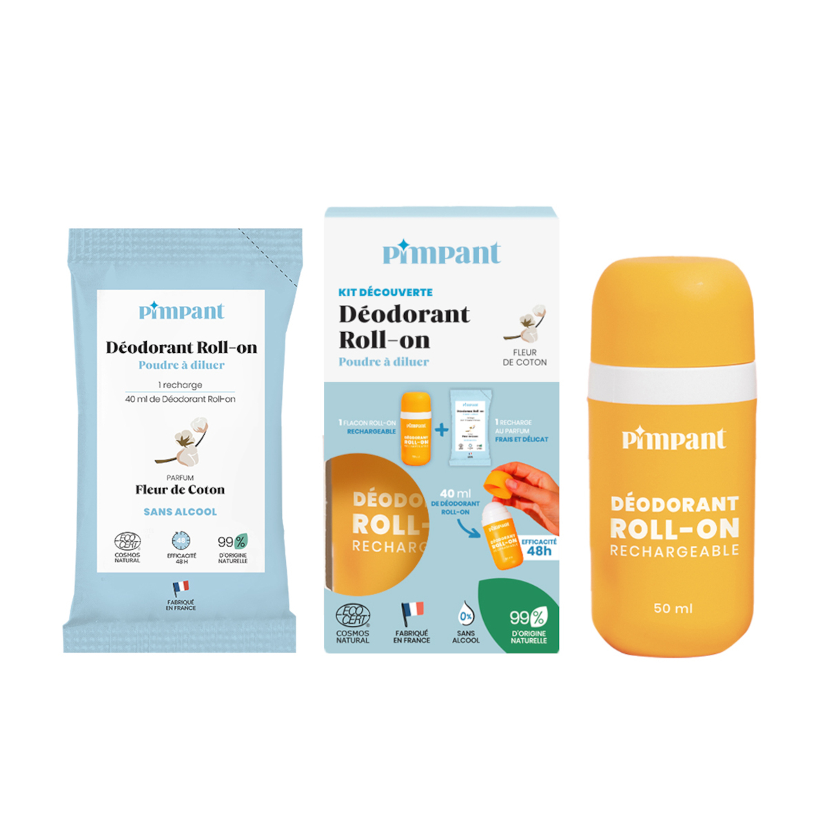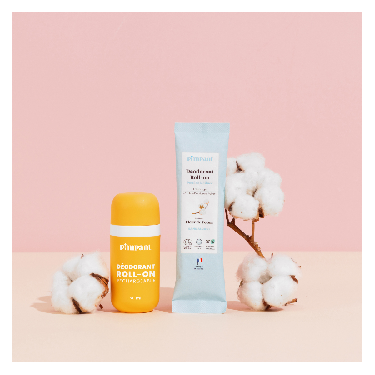 Déodorant rechargeable roll-on Fleur de coton - Kit de découverte