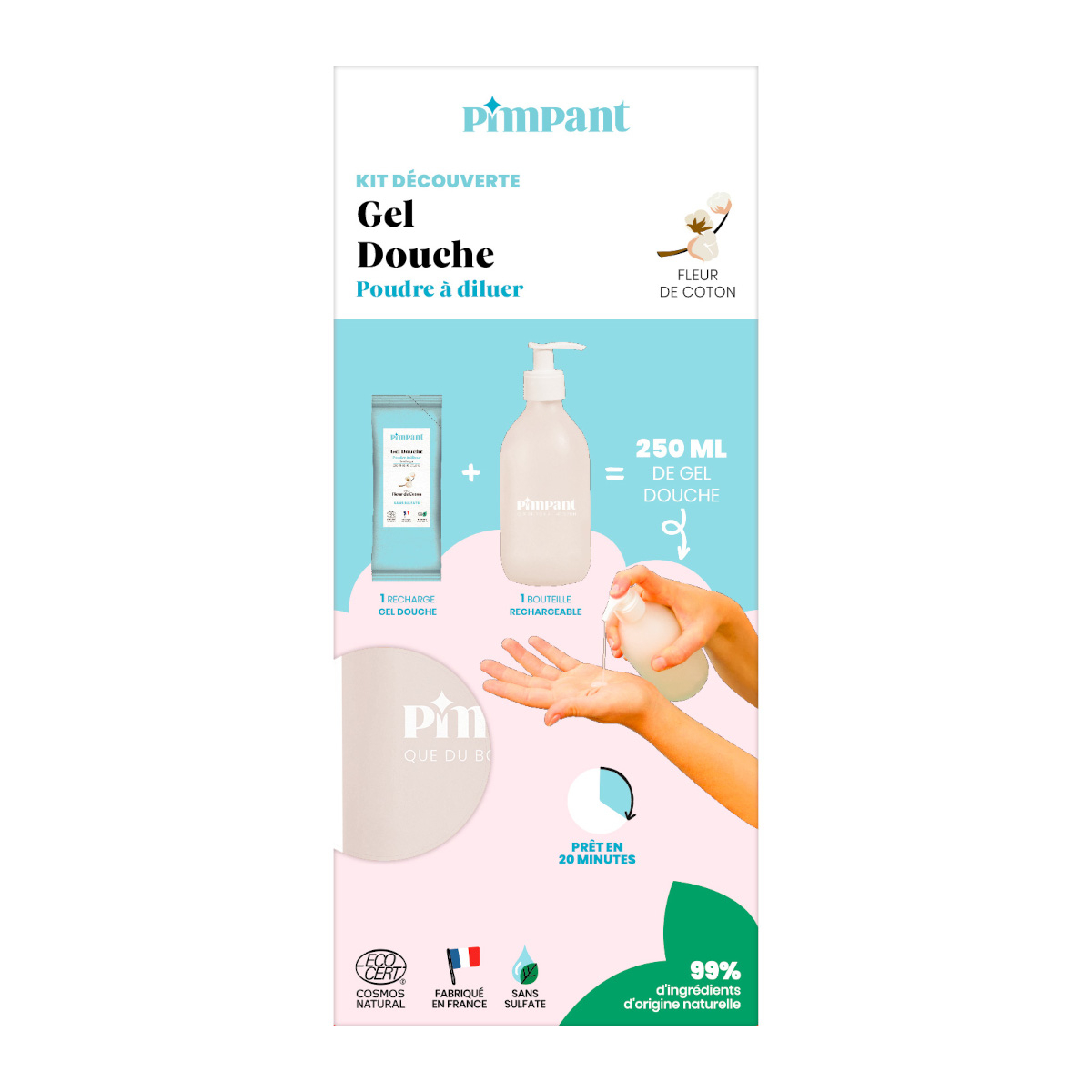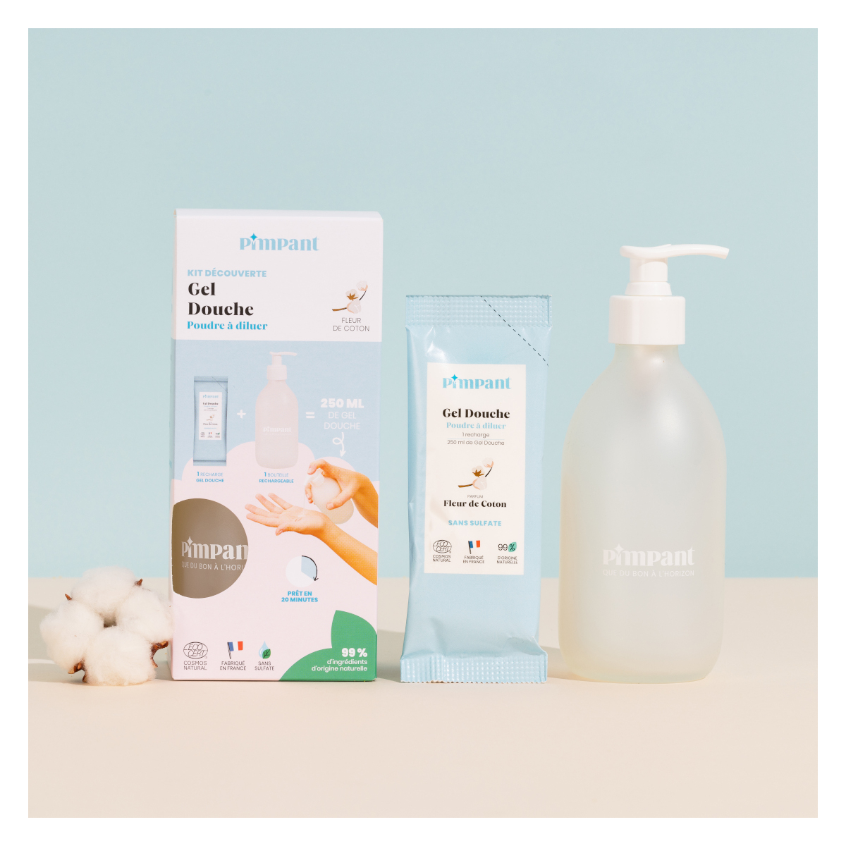 Gel douche en poudre Fleur de coton Pimpant - Kit de découverte