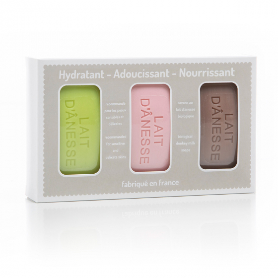 Les trois savons (3x125g) de ce coffret sont enrichis au lait d’ânesse frais et biologique, et au beurre de karité. Une association incomparable pour une formule naturelle aux multiples vertus. En effet, votre épiderme profite d’une hydratation intense et d’un nettoyage doux qui convient parfaitement aux peaux les plus sensibles. De plus, nos savons vous laissent un film protecteur pour préserver votre peau des agressions quotidiennes, et vous permettre de retrouver une douceur durable. Avec un large choix de senteurs, le coffret Concave se plie à toutes vos envies, ou celles de vos proches, et vous séduira par ses produits de qualité pour un cadeau personnalisé dont on vous reparlera longtemps !