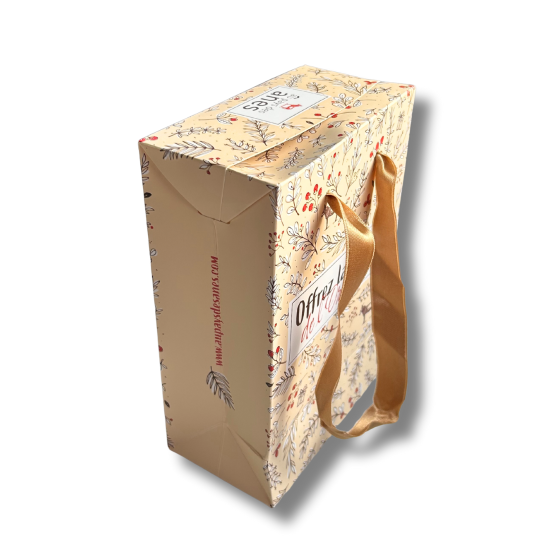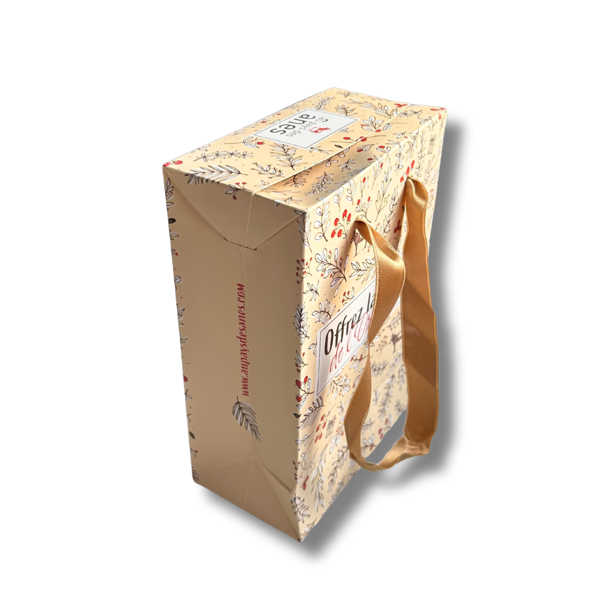 Vendu vide, ce sac boîte vous donne la liberté de composer un coffret cadeau sur mesure, selon les goûts et les envies de la personne à qui vous souhaitez faire plaisir. Parfait pour les fêtes de fin d’année, un anniversaire, ou toute autre occasion spéciale, il permet de présenter vos produits avec raffinement et originalité.