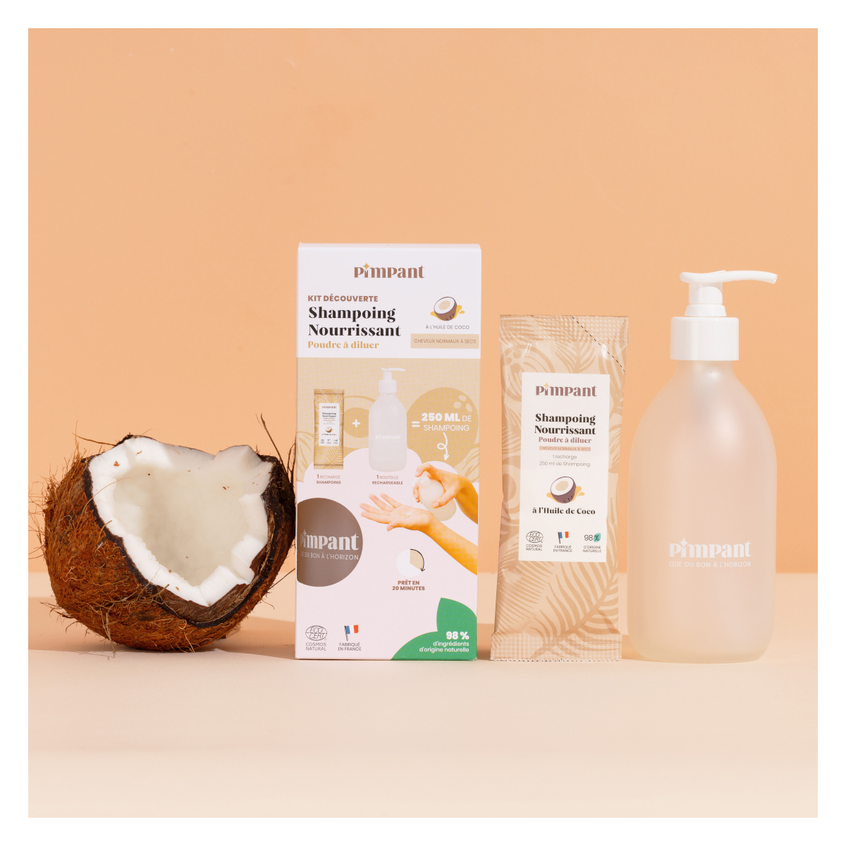 Offrez à vos cheveux secs ou ternes une dose de nutrition avec ce kit découverte de shampoing nourrissant à l’huile de coco. Reconnu pour ses propriétés nourrissantes, cet actif aide à revitaliser la fibre capillaire sans alourdir, pour des cheveux plus souples et éclatants. La texture légère de ce shampoing en poudre développe une mousse fine qui nettoie en douceur tout en facilitant le démêlage. Les longueurs sont plus douces, plus faciles à coiffer et visiblement plus brillantes dès les premières utilisations. Formulé à partir d’ingrédients d’origine naturelle et certifié COSMOS Natural, ce shampoing en poudre respecte le cuir chevelu et convient à toute la famille dès 3 ans. Un soin capillaire complet qui allie efficacité, plaisir et naturalité.